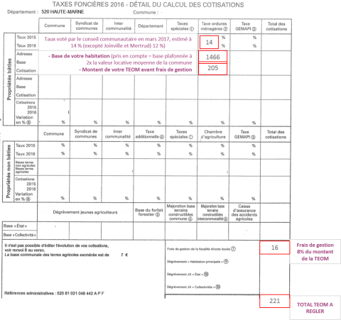 Question : Je viens de recevoir ma Taxe Foncière 2017, elle a augmenté à cause de la TEOM.