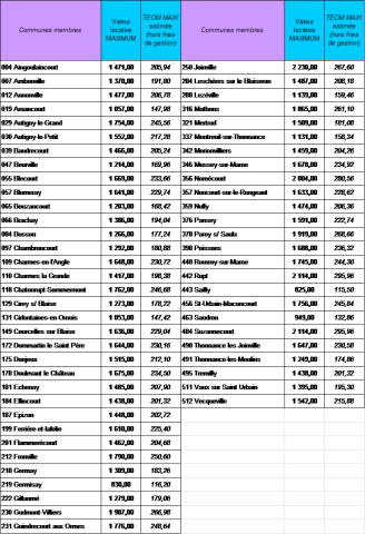 Valeurs locatives maximales par commune et TEOM maximum estimée par commune